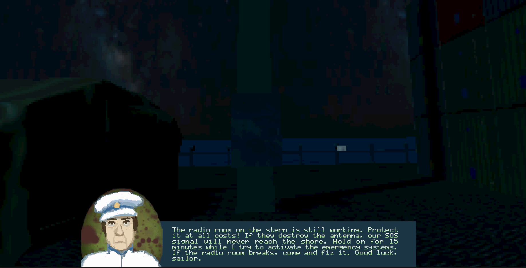 The ship enters a strange anomaly; some passengers are dead, while others are hiding. The captain sends a distress call to another vessel, but he needs help defending the radio room for the signal to be transmitted. Kill monsters and pick up ammo, as it's limited!